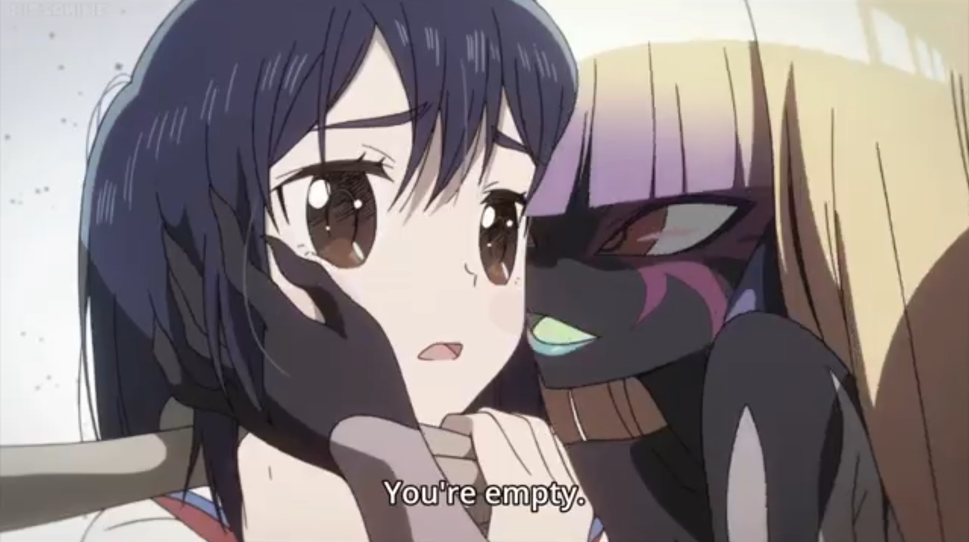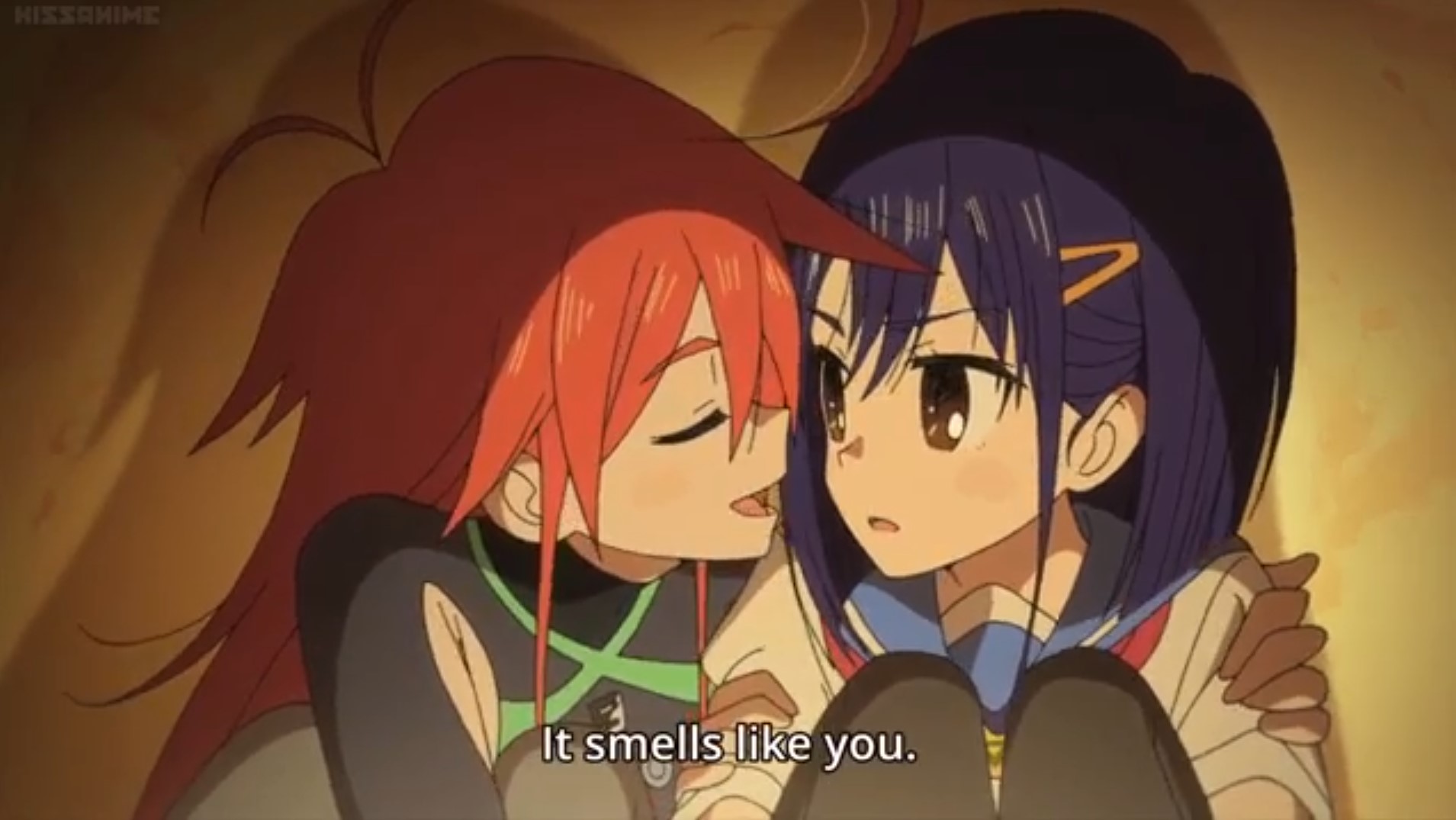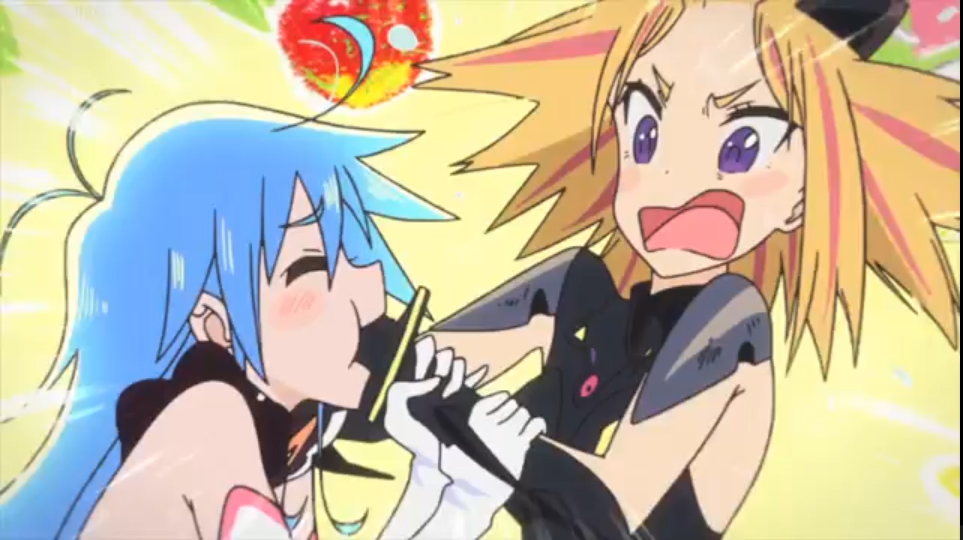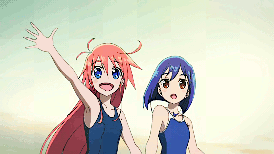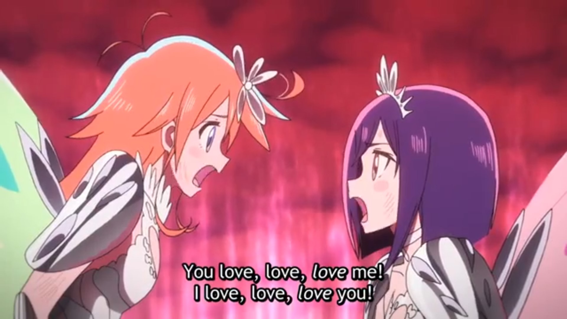 Folge 6 wollte nicht abspielen, Folge 7 und 8 waren meer Yuri, und zumindest der Hauch einer Geschichte: Es gibt eine Hartkern-Fantasiewelt, und wenn man da zu hart reinyurit, dann kann das Auswirkungen auf die echte Welt haben. Und die Schulkollegin aus der Fanatiker-Konkurrenzorganisation würde wohl auch gerne Flip Flappen, aber ist noch nicht Yuri genug und traut sich deshalb nicht, oder so. >>389 Ja, man hätte mehr daraus machen können. Spaßfakt: Bernd hatte irgendwo einen Pfosten oder Forumstext zu Flip Flappers gelesen, wo jemand unironisch sagte: >FF ist so gut geschrieben, man kann eben auch zeigen, dass die Charakter sich lieben, ohne dass sie sich unbedingt küssen müssen. Ja toll, stattdessen enden sie pro Folge 5 mal aufeinander, und Papika redet von der ersten Folge an ohne nachvollziehbaren Grund die ganze Zeit davon, wie sehr sie Cocona liebt. Unsubtiler geht es gar nicht, der Animu ist ein Yuri-Holzhammer.