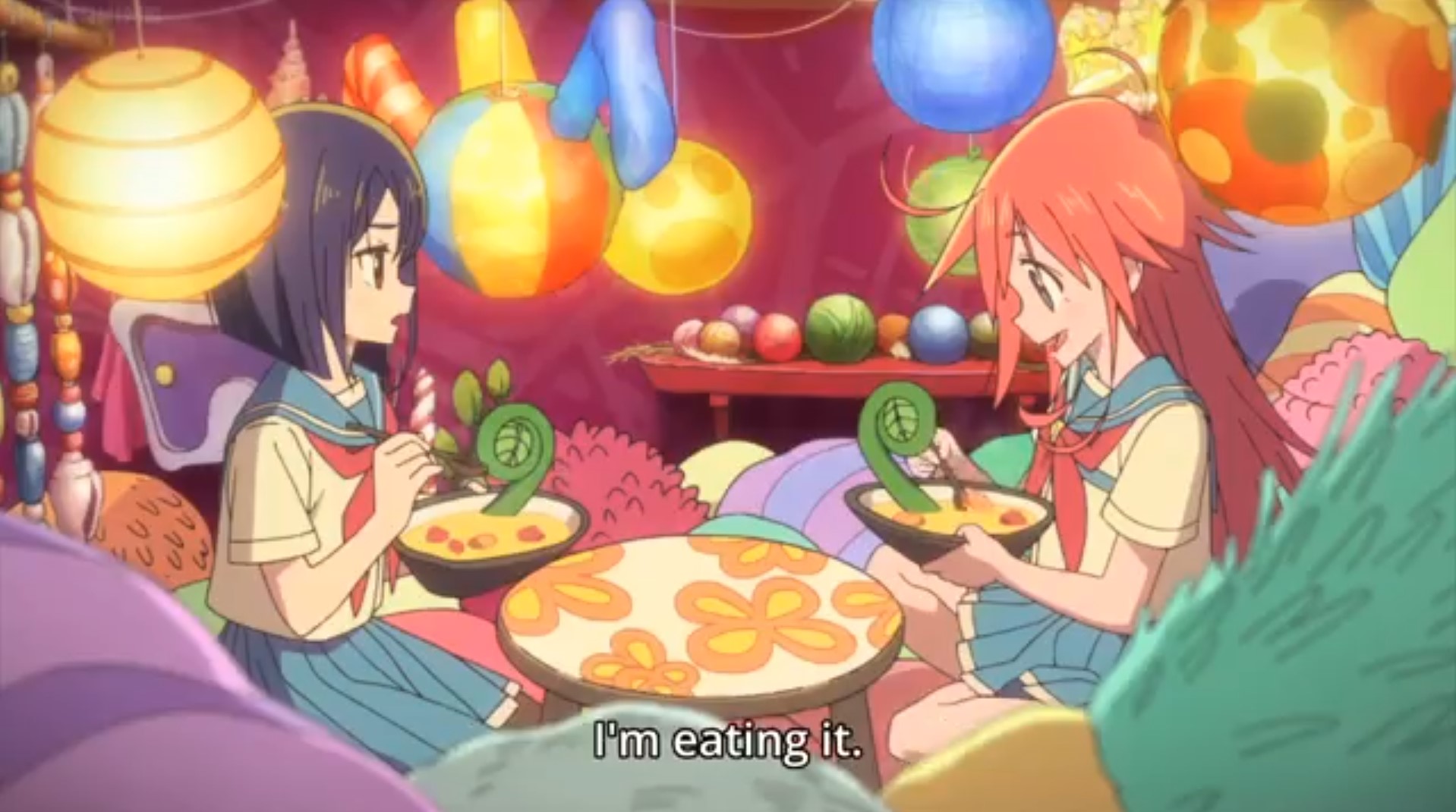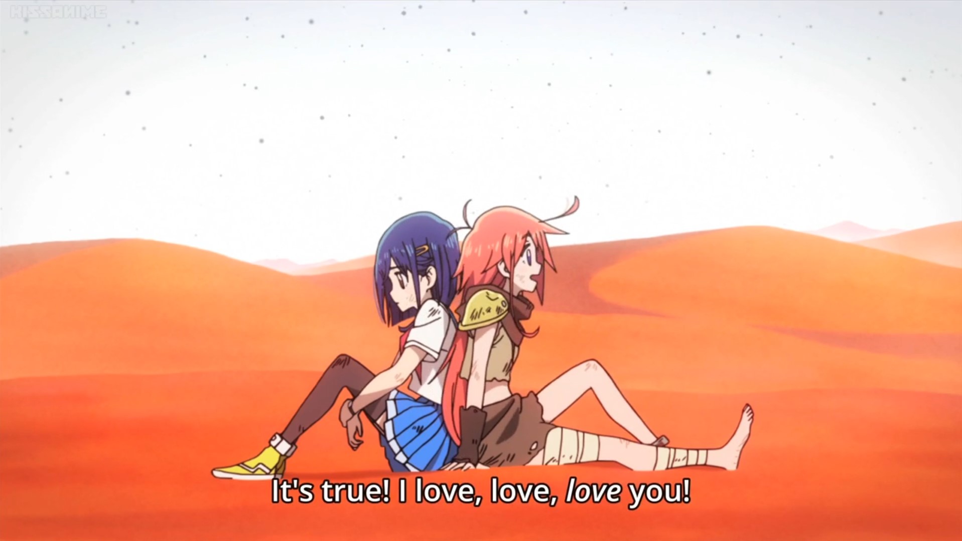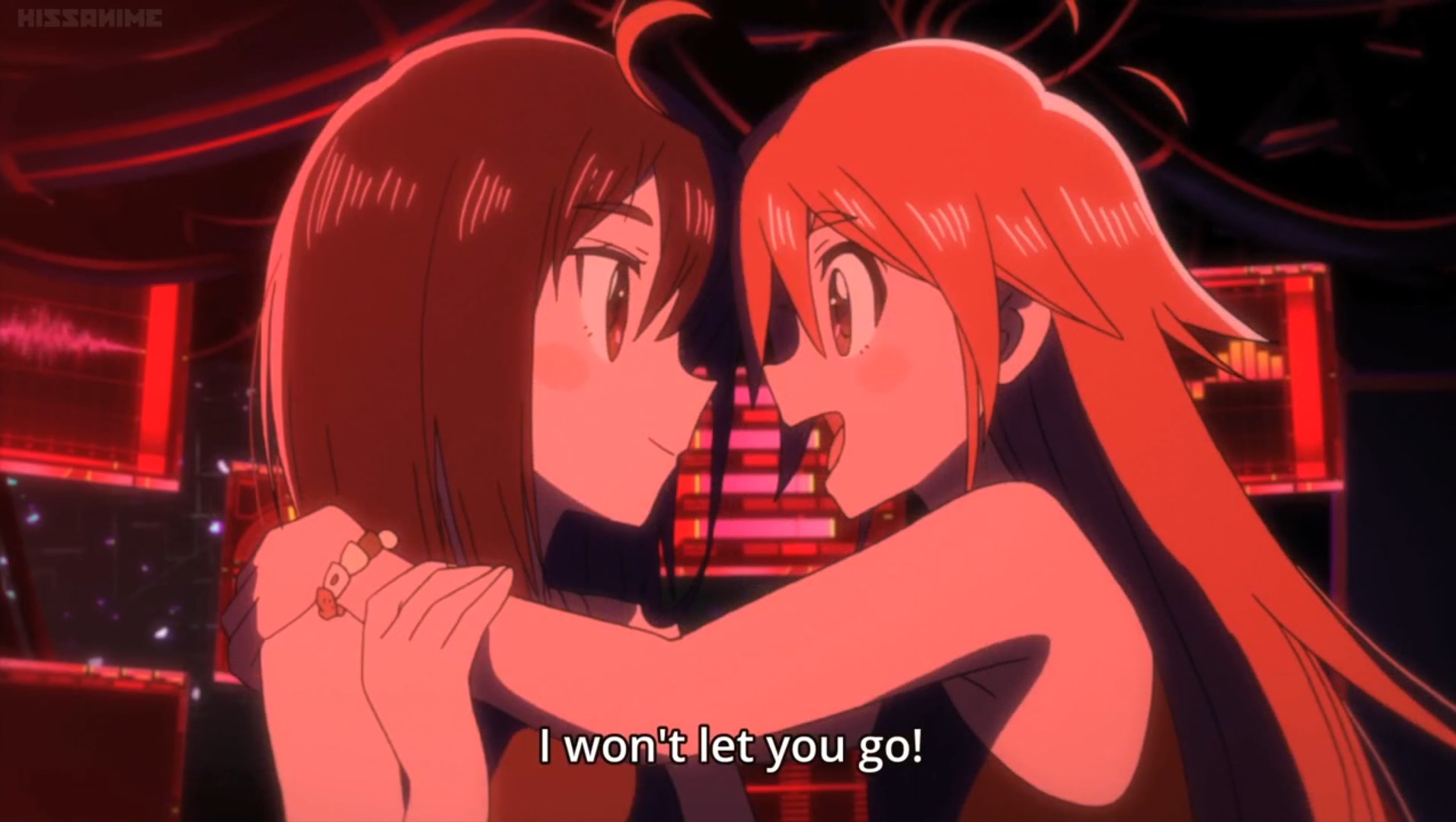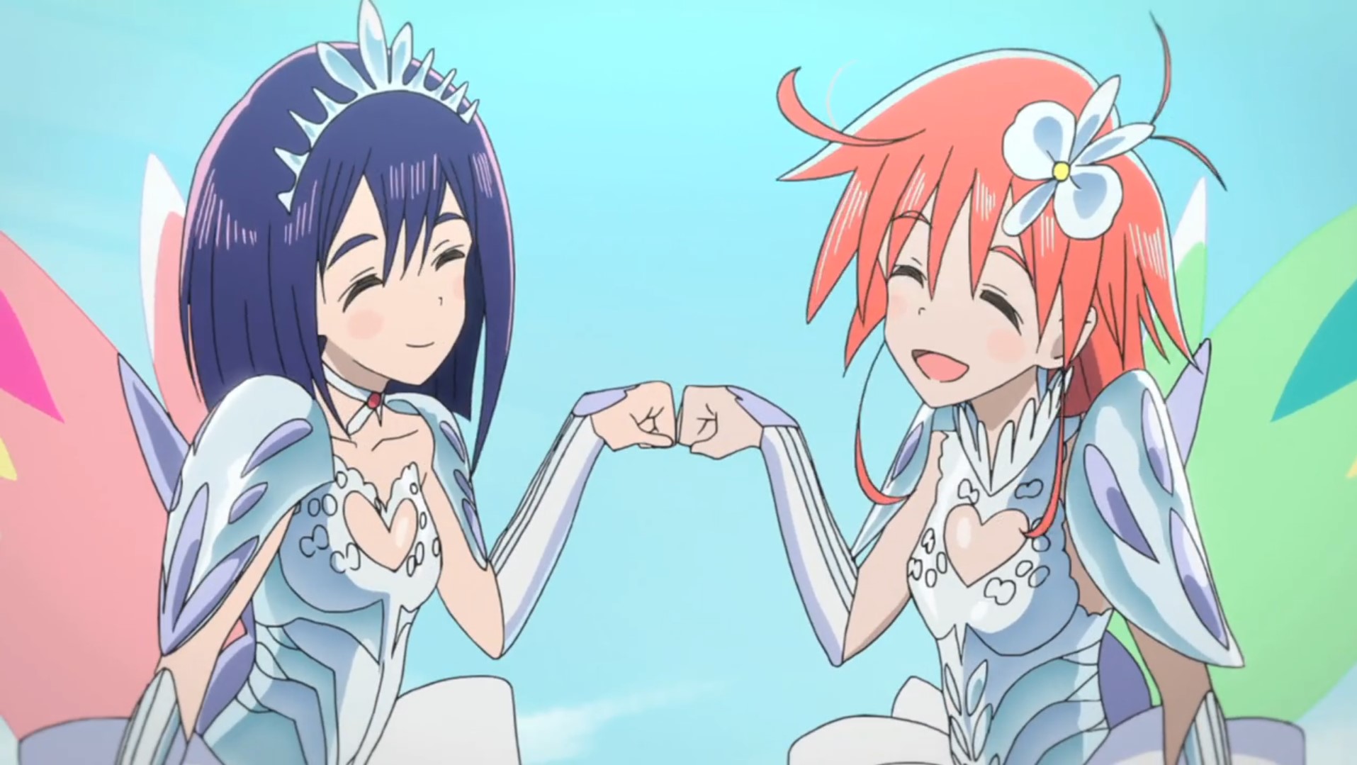 Folge 6 wollte nicht abspielen, Folge 7 und 8 waren meer Yuri, und zumindest der Hauch einer Geschichte: Es gibt eine Hartkern-Fantasiewelt, und wenn man da zu hart reinyurit, dann kann das Auswirkungen auf die echte Welt haben. Und die Schulkollegin aus der Fanatiker-Konkurrenzorganisation würde wohl auch gerne Flip Flappen, aber ist noch nicht Yuri genug und traut sich deshalb nicht, oder so. >>389 Ja, man hätte mehr daraus machen können. Spaßfakt: Bernd hatte irgendwo einen Pfosten oder Forumstext zu Flip Flappers gelesen, wo jemand unironisch sagte: >FF ist so gut geschrieben, man kann eben auch zeigen, dass die Charakter sich lieben, ohne dass sie sich unbedingt küssen müssen. Ja toll, stattdessen enden sie pro Folge 5 mal aufeinander, und Papika redet von der ersten Folge an ohne nachvollziehbaren Grund die ganze Zeit davon, wie sehr sie Cocona liebt. Unsubtiler geht es gar nicht, der Animu ist ein Yuri-Holzhammer.