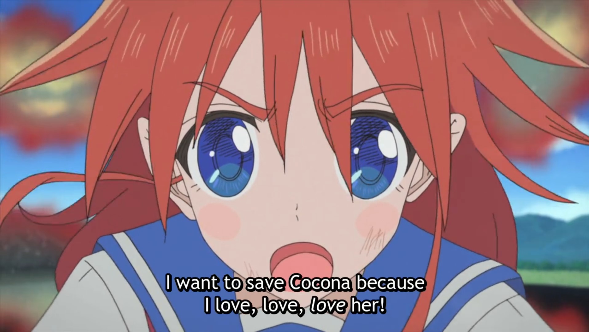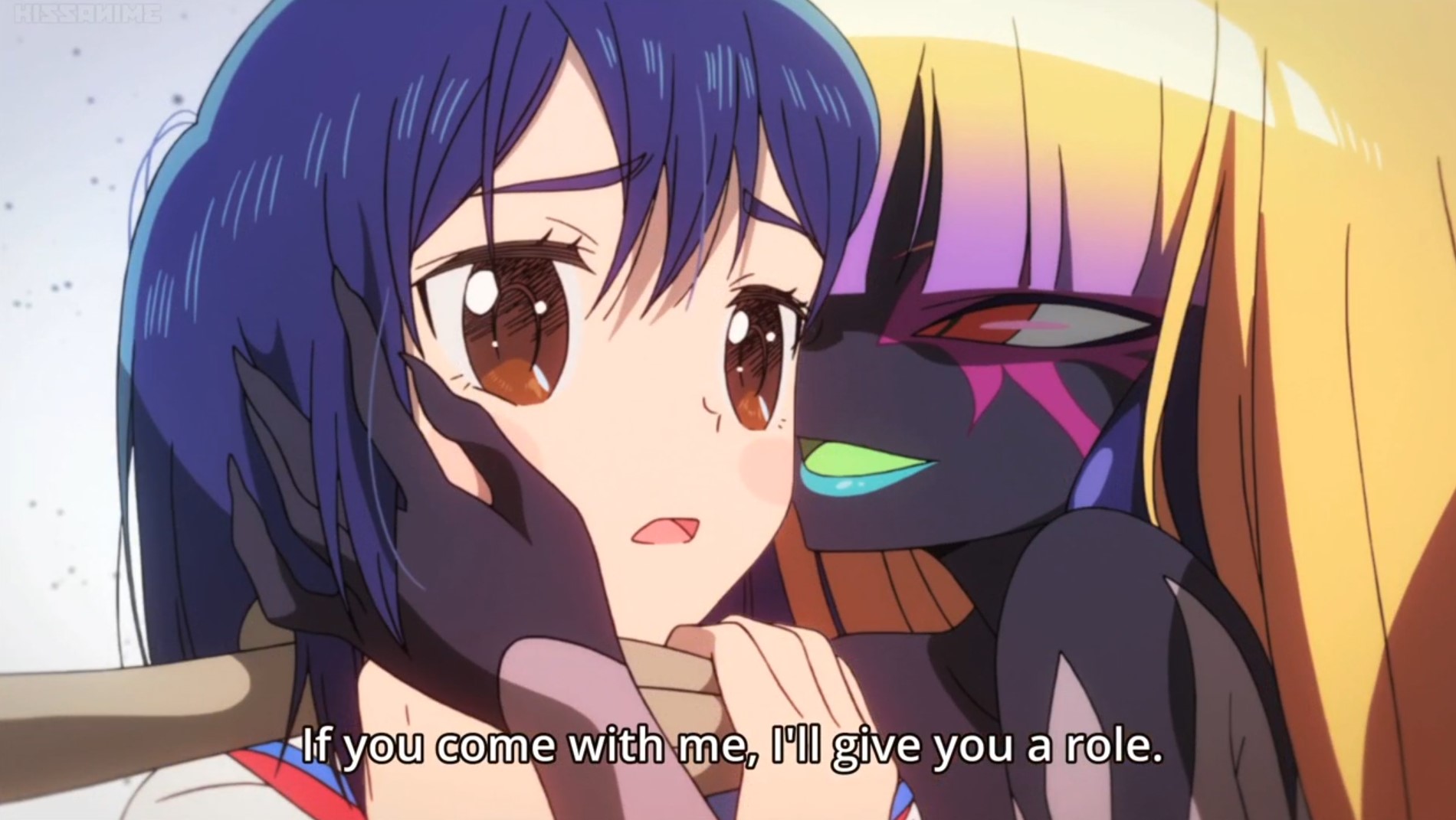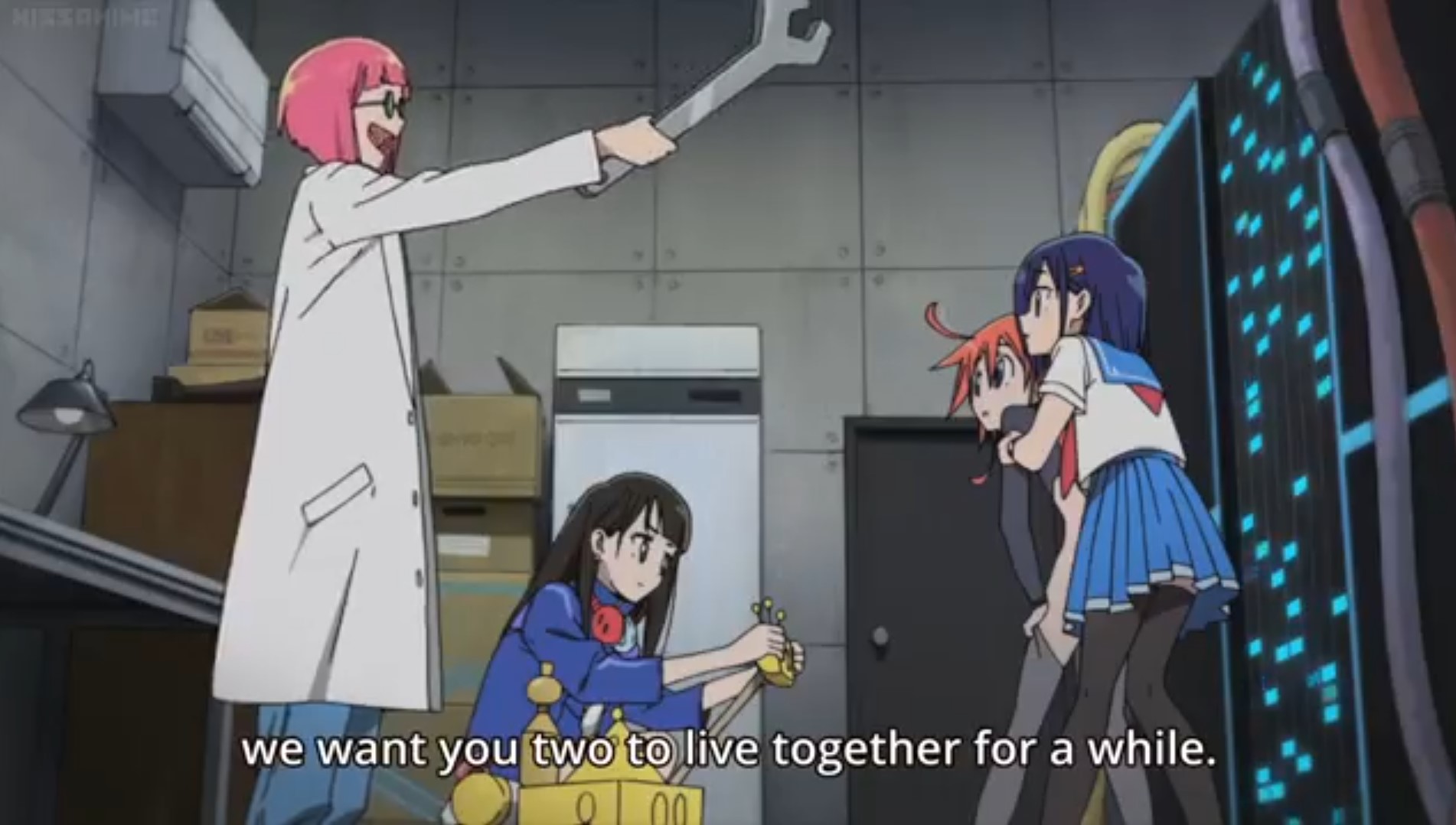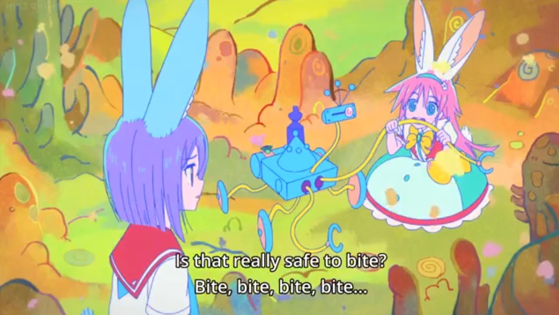 Folge 6 wollte nicht abspielen, Folge 7 und 8 waren meer Yuri, und zumindest der Hauch einer Geschichte: Es gibt eine Hartkern-Fantasiewelt, und wenn man da zu hart reinyurit, dann kann das Auswirkungen auf die echte Welt haben. Und die Schulkollegin aus der Fanatiker-Konkurrenzorganisation würde wohl auch gerne Flip Flappen, aber ist noch nicht Yuri genug und traut sich deshalb nicht, oder so. >>389 Ja, man hätte mehr daraus machen können. Spaßfakt: Bernd hatte irgendwo einen Pfosten oder Forumstext zu Flip Flappers gelesen, wo jemand unironisch sagte: >FF ist so gut geschrieben, man kann eben auch zeigen, dass die Charakter sich lieben, ohne dass sie sich unbedingt küssen müssen. Ja toll, stattdessen enden sie pro Folge 5 mal aufeinander, und Papika redet von der ersten Folge an ohne nachvollziehbaren Grund die ganze Zeit davon, wie sehr sie Cocona liebt. Unsubtiler geht es gar nicht, der Animu ist ein Yuri-Holzhammer.