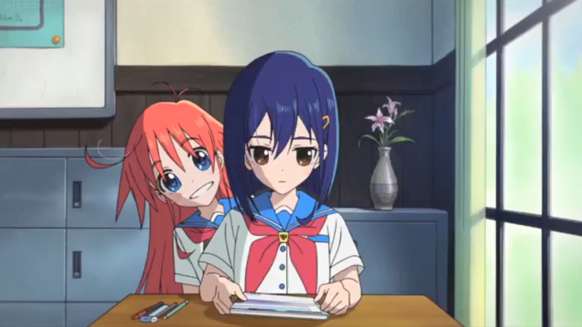 Bernd hat gestern mit Flip Flappers begonnen, einem 13-teiligen Animu von 2016. Scheinbar weiß niemand, worum es dort überhaupt geht, selbst wenn er es geschaut hat. Aber Bernd hat noch niemanden gesehen, der sich darüber negativ geäußert hätte, also will er diesem Rätsel jetzt auf den Grund gehen. Ausgehend von der ersten Folge würde er sagen geht es um ein rothaariges, extrovertiertes Mödchen, welches aus bisher ungeklärten Gründen zwischen Welten reisen kann, und die in einer Welt ein introvertiertes blauhaariges Mödchen findet, von der sie glaubt, dass sie das auch kann, und dann gehen sie zusammen Abenteuer erleben. Auch: Yuri!