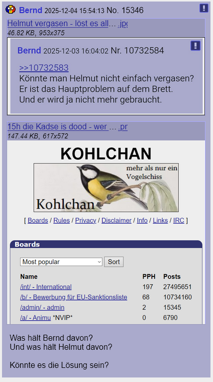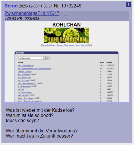 Kohlchan dood Bernd 2025-11-20 14:42:16 Nr. 19176 [AUTOSÄGE] Antworten Letzte 50