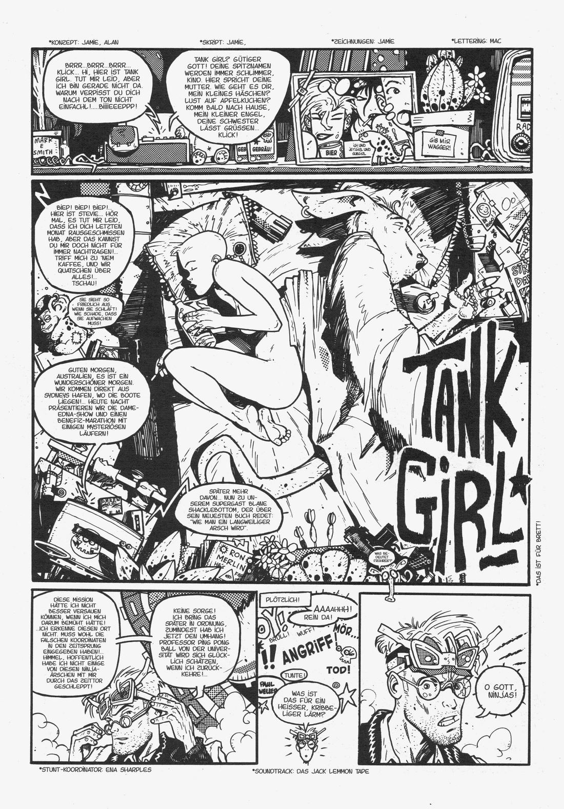 Bei Tank Girl handelt es sich um besten, britischen underground. Zeichner Hewlet wurde später mit der Erschaffung der Gorillaz reich und berühmt.