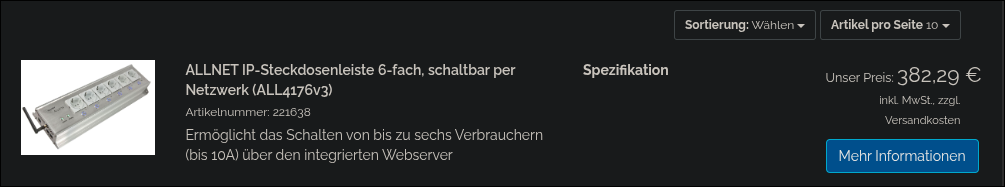 >>17905 Brennenstuhl Power Manager PMA, Steckdosenleiste 6-fach mit Überspannungsschutz und 4 x USB-Anschluss (einzeln schaltbar und 2m Kabel) schwarz. Letzter Preis: um die 30 Euro. Bernd hätte dir gerne auch hier geholfen, aber der Artikel wird von Brennenstuhl nicht meer hergestellt. Alternativ fallen mir jetzt noch schaltbare Kabelboxen ein.