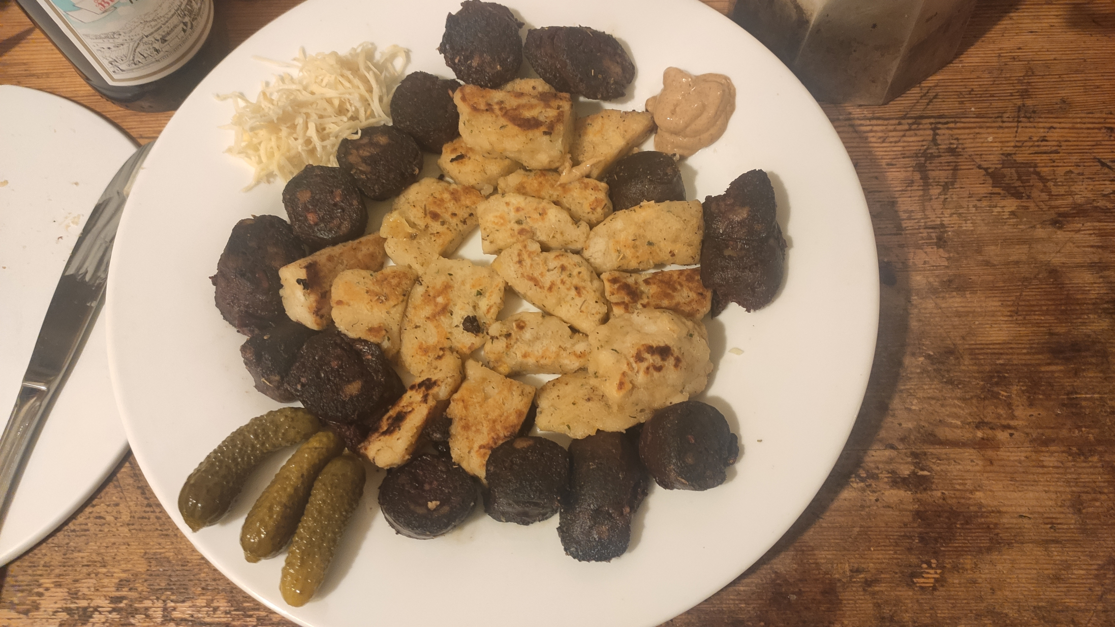 >>115 >Drehspieß Hackfleisch mit Gewürzen mischen, in eine Rolle aufrollen und in die Tiefkühltruhe schmeißen. Nicht so lange dass es knochenhart wird, einfach nur 1-2 Stunden so dass man es mit dem Messer wie eine Salami schneiden kann. Die Scheiben dann in der Pfanne anbraten und man bekommt etwas, was Drehspießfleisch recht ähnlich ist. Kann verbessert werden, indem dem Fleisch noch Zwiebel (fein gerieben), Brötchen, Joghurt o.ä. beigemischt wird (wie bei Frikadellen eben).
