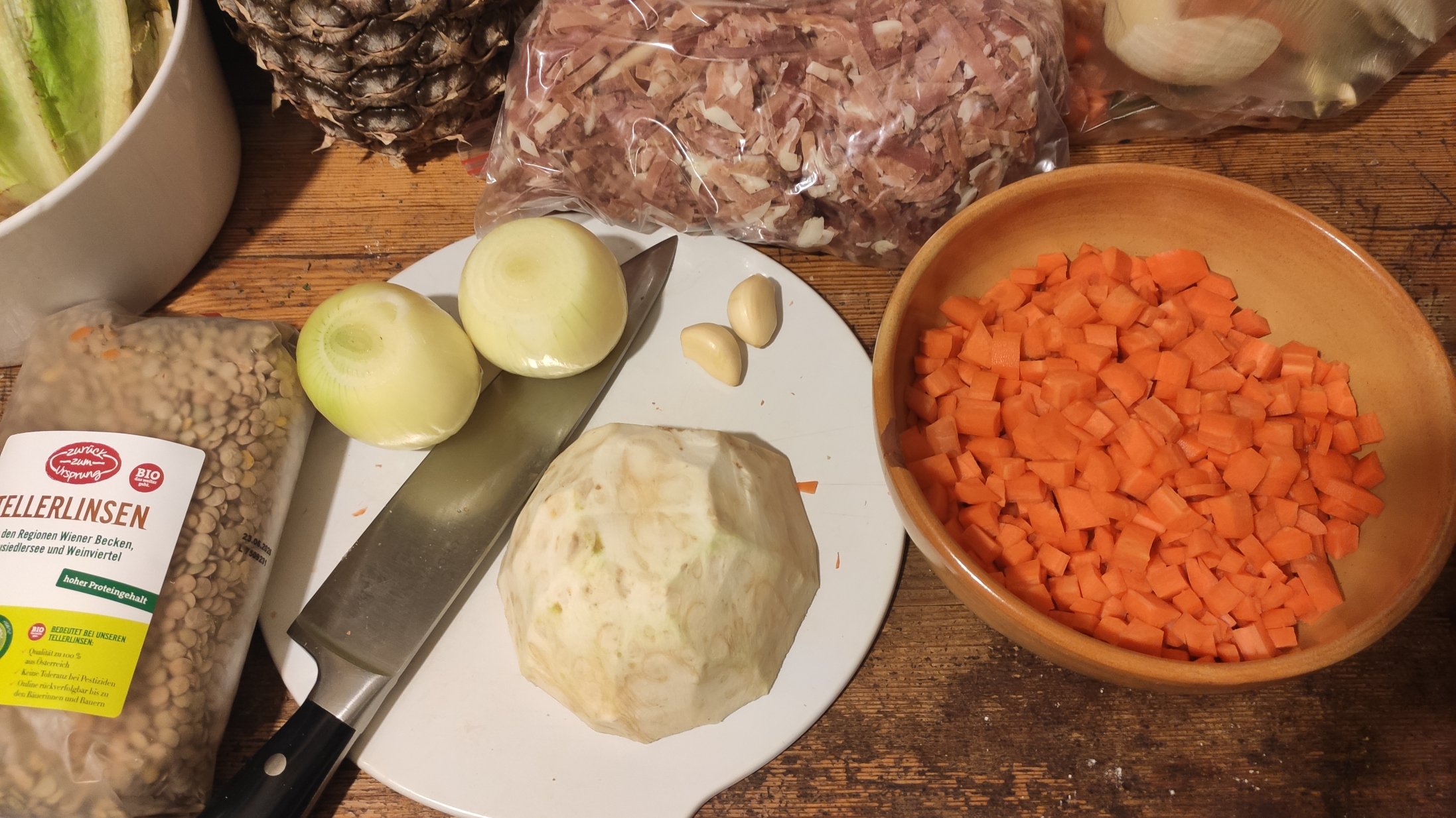 >>285 >Eintöpfe können hier also auch rein. https://www.suppeninstitut.de/index-suppeninstitut.html/wissenswertes-2/der-kleine-unterschied Bernd macht ab und zu Kartoffelsuppe. Aber dann gleich so viel, dass er 3-5 Tage davon essen kann. Die fertige noch heiße Suppe wird in 700ml-Gurkengläser (mit Schraubverschluss) abgefüllt und raus in die Kälte gestellt. So hält sich das bis zu 2 Wochen. Auch: Bernd hat zur Zeit wieder Kürbissuppenzeit. Nur leider sind ihm diese Hokdaidos zu süß, aber leider haben überall Leute welche übrig und wollen/müssen diese verschenken. Bernd hat die Sache dadurch gelöst, in die Kürbissuppe noch eine Portion passierte Tomaten und massig Ingwer reinzugeben. Das neutralisiert den Hokkaidogeschmack etwas.
