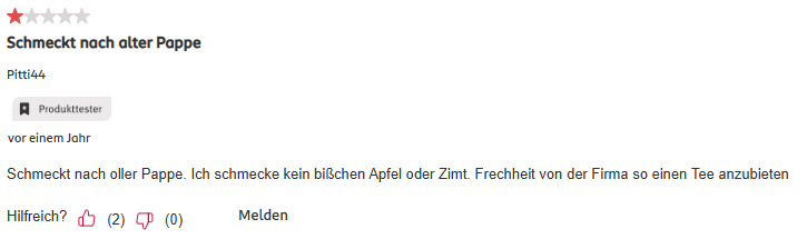 >>149 > Zeit für Vitalität Kräutertee Urteil: Kann man trinken. Werde aber nicht nochmal kaufen.