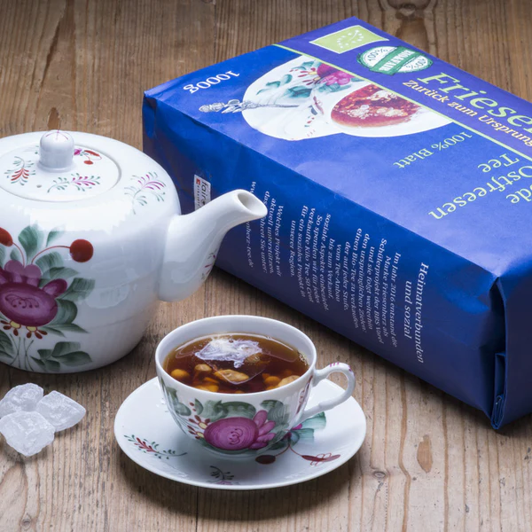 >>163 >>164 Bernd hat nachgeschaut, es findet sich kein Hinweis auf einen Zusatz, der die Süße erklären würde, ist vielleicht bei dieser Mischung normal. Ostfriesentee ist offenbar immer eine Mischung als vielen Sorten, um Reste zu verarbeiten das Risiko von Geschmacksschwankungen zu reduzieren, und der Großteil der Mischung ist in der Regel Assam. Das passt zu Bernds Eindruck, aber im Vergleich zu einem reinen Assam - von denen Bernd einige Sorten durchprobiert hat - ist dieser Tee vergleichsweise mild. Was wie gesagt nichts Schlechtes ist, er trinkt sich sehr gut, auch ohne Kluntje und Wulkje.