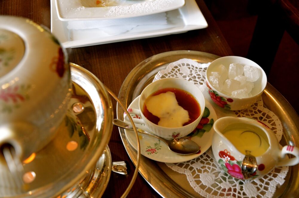 Was die schwarzen Tees angeht, so hat Bernd schon diverse Variationen durchprobiert. Am Ende mochte Bernd die meisten der asiatischen Sorten eher nicht, weil diese zu blumig im Geschmack waren. Bei den schlimmeren Vertretern hatte Bernd teilweise den Eindruck, er würde parfümiertes Wasser trinken. Am Ende konnte Bernd jedoch ein par ihm schmeckende Varianten finden: Die ostfriesischen Frühstückstees, diverse der Britischen nein, nicht Graf Grau sondern eher so Yorkshire Gold und auch die türkischen Schwarzen munden Bernd sehr gut. Alle Sorten haben gemein, dass sie ein kräftigeres, schon leicht erdiges Aroma haben. Okeh, war alees.