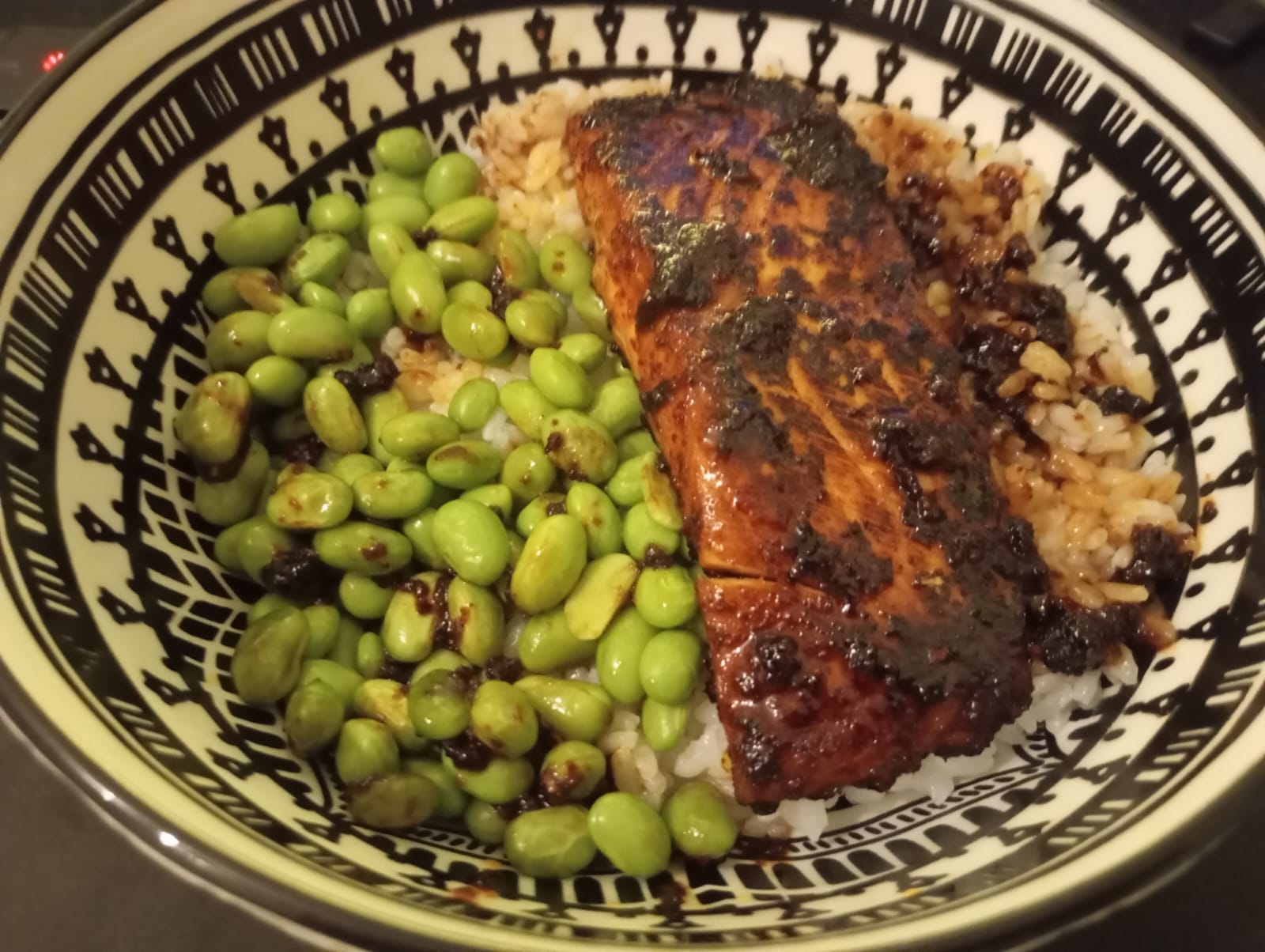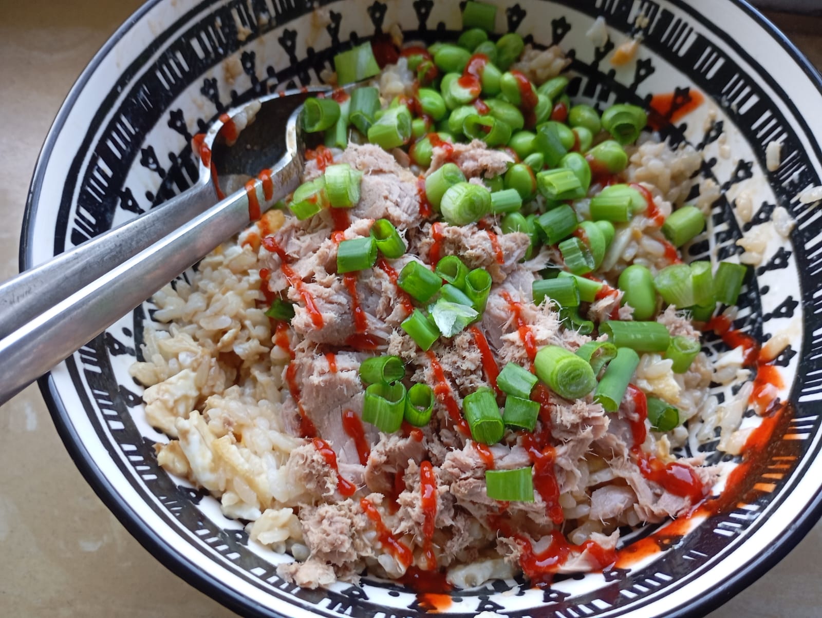 Als Beilage zu diesem Rezept wird traditionell Reis gereicht. Er kann in einem Reiskocher in kurzer Zeit zubereitet werden. Ansonsten geht Quellreis sehr schnell und einfach zu kochen: 1 Tasse Reis wird mit 1,5 Tassen Wasser und einer Prise Salz angesetzt und kurz aufgekocht. Danach wird der Reis ca. 10 Minuten bei kleiner Temperatur und geschlossenem Topfdeckel weitergekocht. Bei abgeschaltetem Herd noch etwas ziehen lassen und fertig ist die Beilage.