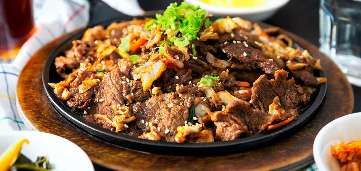 Nun kann das Öl in einer Pfanne erhitzt werden. Es ist heiß genug, wenn sich an einem Holzstäbchen, das in das Öl gehalten wird, kleine Blasen bilden. Das Fleisch wird in das Öl hineingegeben und scharf angebraten. Sobald es knusprig genug ist, kommt die Soße in die Pfanne, um es abzulöschen.