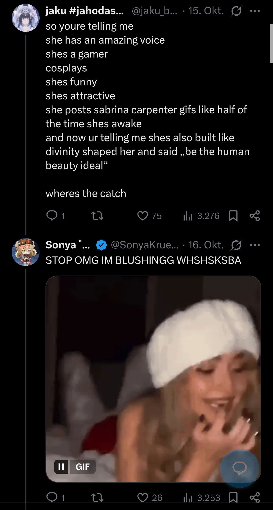 Here she's posting bikini pics and then the fans draw Jahoda in that bikini. Everyone gets crazy and horny. Women benefits. What is behind making a Genshin Impact character like Jahoda? 8 underpaid chinese programmer interns, 5 animators, 3 cleaning ladies and 2 disgusting business managers in suits having meetings all day. Oh but all of this work doesn't matter because also one women is part of the team, the woman that uses her voice to give the character speech. And now? Clearly the virtual character belongs to the stupid women who happened to be female and speak into a microphone.