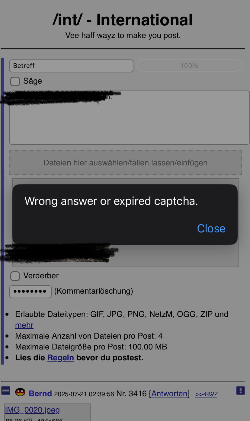 That happens when the CAPTCHA automatically activates while you are in a thread. Normally that should not happen with activated JS. But if it happens just reload the site. We will also review the CAPTCHA triggers.
