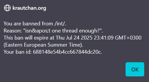 Not the place for spamming your agenda. This as well >>247. There was already a second thread by you with the same topic and you even made a third one. If you are unhappy with moderation use >>>/kc/ in future and not shit up /int/ furtherly. Therefore moved.