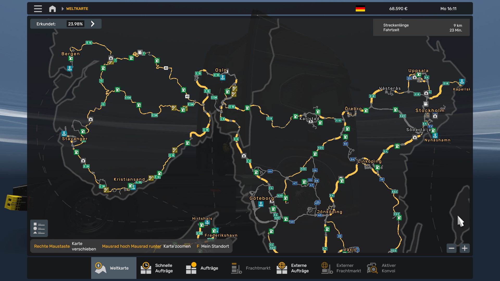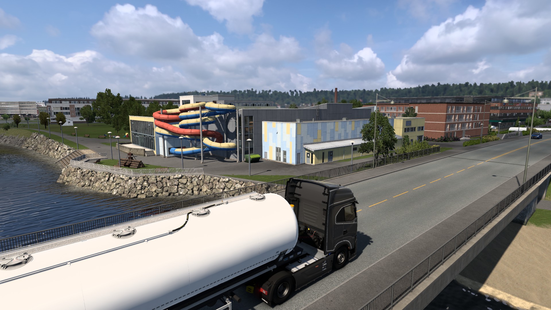 >>710 Und langsam weiter nach Norden. Lektion heute: Sand wird in Tankwagen transportiert. Norwegische Anhänger sind so stark, die halten sich selbst in der Luft. Highway to Hell (gesperrt für Spieler). Erstaunlich viele Fährüberfahrten da oben. Ist vielleicht einfacher als lauter lange Brücken.