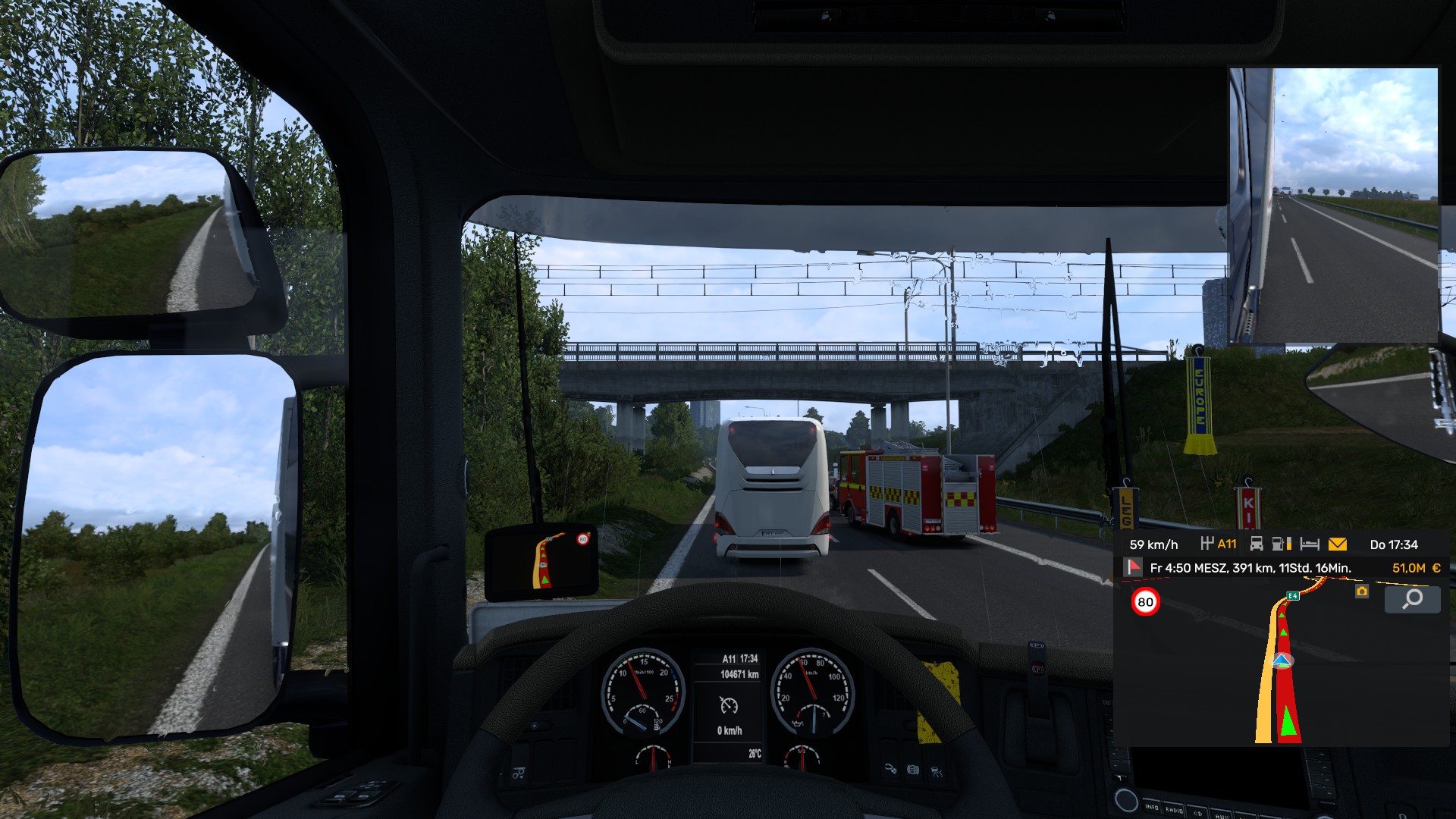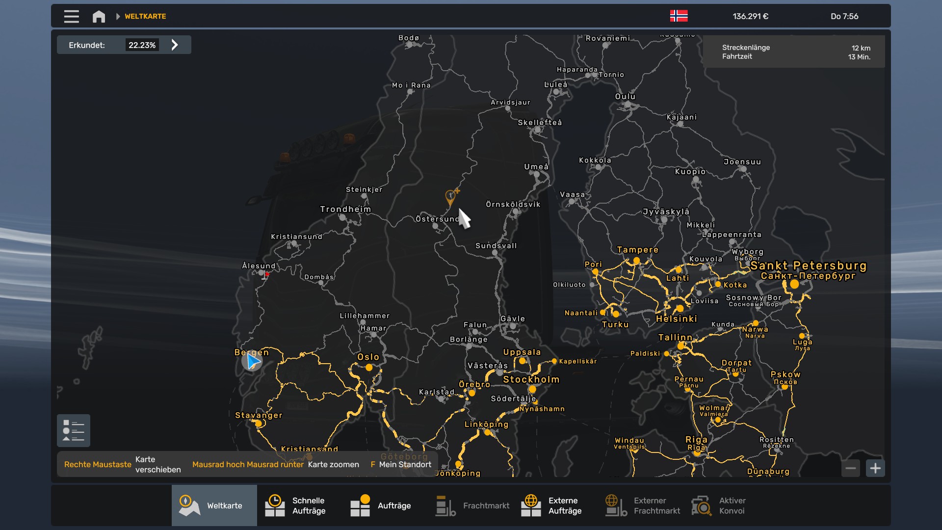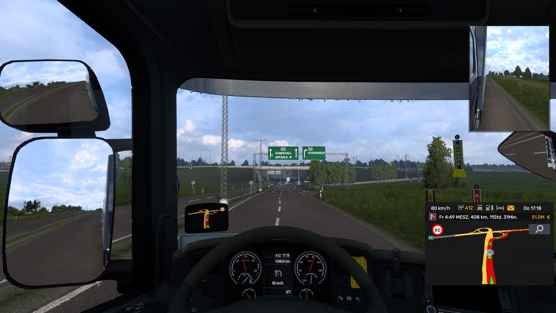 Bernd ist auch nochmal ein bisschen was gefahren nach dem Update. Durchs schöne Schweden (für ein paar Meter) rüber nach Estland. Natürlich direkt nach Auffahren auf die Autobahn Unfall mit Spursperrung. WIE SOLLTE ES AUCH ANDERS SEIN. Am Zielort aber alles superdufte, einfach von der Fähre runter und auf den Hof. Selbst der Parkplatz hinten in der Ecke war kein Problem weil es vorne genug Platz zum rangieren gab. Ernst freut sich, wieder im Baltikum zu sein, da fährt er gerne rum, obwohl er sonst Flachland eher nicht mag.