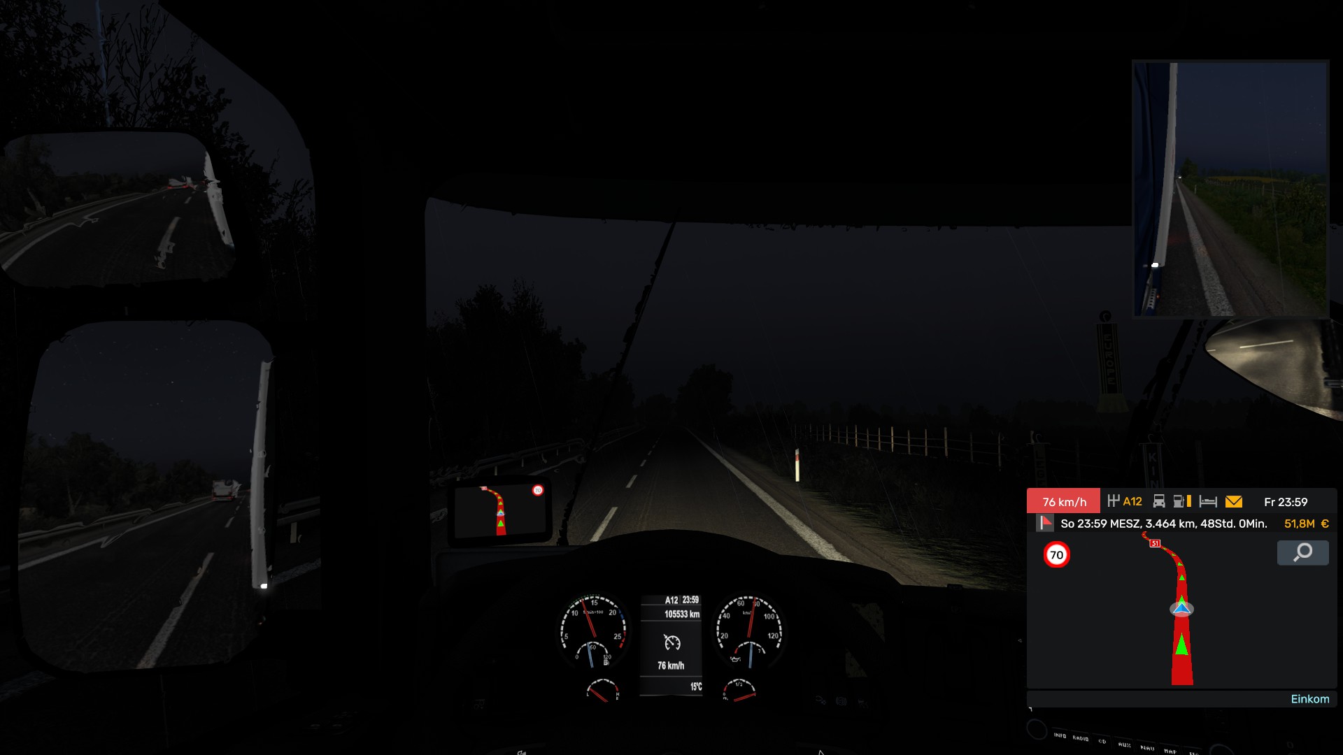 Aktuell fahre ich von Bellingham (Washington) nach Sidney (Montana) auf den nördlichsten Straßen in ATS. Echtwelt-Nacht-Pause bei Sandpoint (Idaho). Unrelatierter Gedanke: Louisiana für ATS (auf meiner Wunschliste seit 10.10. 2024) könnte sehr wahrscheinlich früher erscheinen als Nordic Horizons für ETS2 (Wunschliste seit 26. 01. 2024). 1. Ein US-Staat kam schon raus, der später auf meiner Wunschliste stand als NH 2. Alleine die Aufmotzung der bereits vorhandenen Teile Skandinaviens ist eine Riesenarbeit und das darf natürlich nicht NACH dem DLC fertig sein