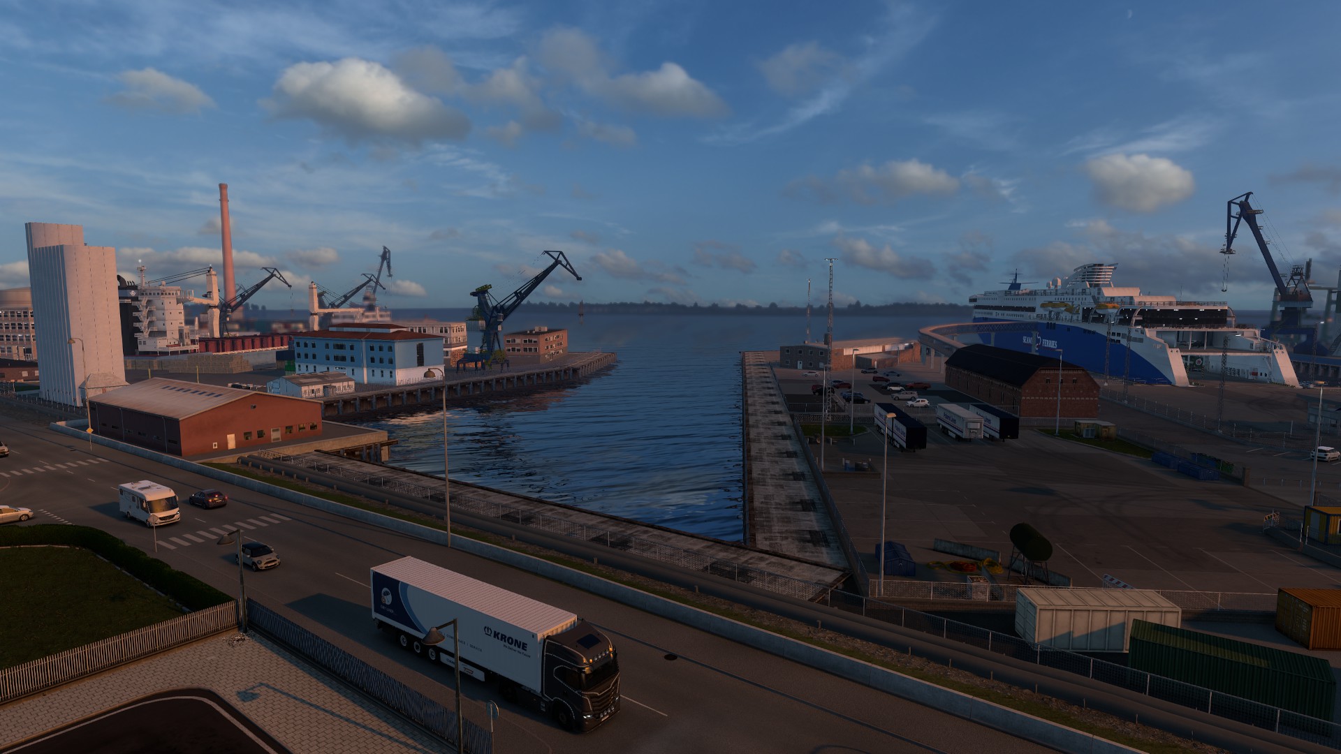 Danach ein paar kleinere Sachen; nach dem Update eine Ladung Fertighauswände von Bergen nach Aarhus. Das Dock1, was in Bild 2 zu sehen ist, hat Bernd auch schon im Echtleben besucht :3 Tatsächlich erkannte er im Hafenbereich einiges wieder. Heute dann eine schnelle Lieferung von Aarhus nach Travemünde mit absoluter Hurensohneinparkerei, aber Bernd fährt ja nicht erst seit heute Auto und hat das natürlich hochprofessionell ohne viel Korrigieren gewuppt.