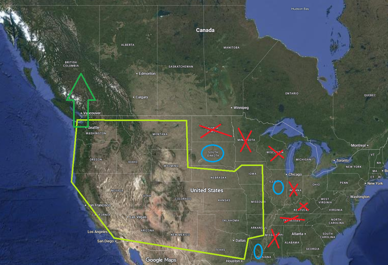 Ein ganz unerwarteter Spielzug: Die nächste Ankündigung für ATS ist nicht einer der östlich von der bisherigen (hellgrün) oder sicher zukünftigen (blau) US-Landmasse, sondern... Britannisch-Kolumbien in Kanada. Darauf wäre ich nie gekommen.